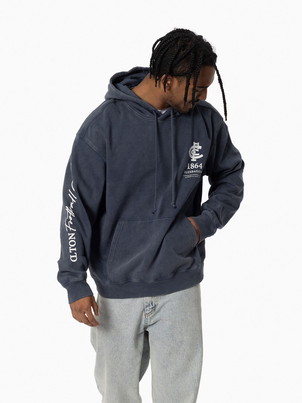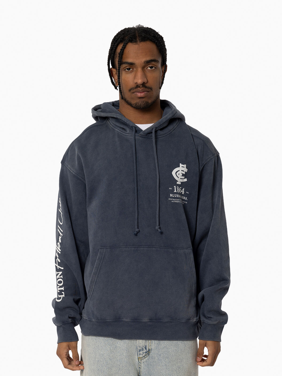 Carlton Blues AFL Mens Acid Wash Hoodie | Moonlit Ocean