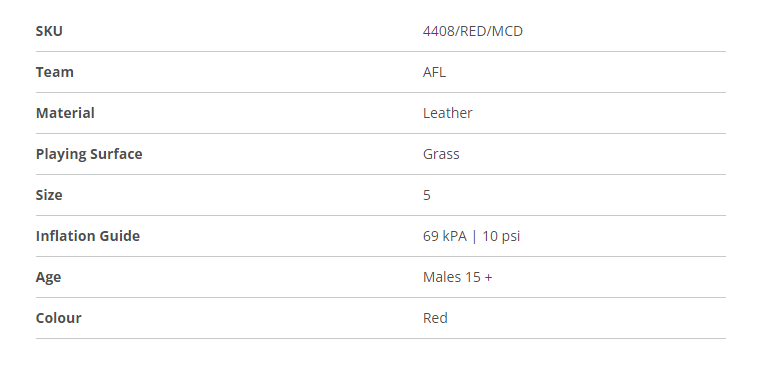 The AFL Replica Game Ball is ideal for those looking to have a footy game with mates down at the local footy oval or in the backyard. Made with Premium Leather, it is of match quality and suited to grass surfaces only.
